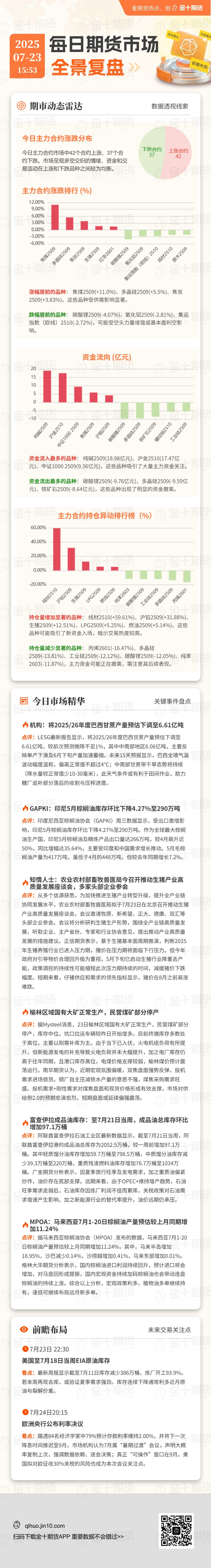 混沌天成期货认为,近期工信部推动重点行业淘汰落后产能,雅鲁藏布江下游水电工程开工,基本确认反内卷政策要从供需两端发力解决当前市场内卷通缩的问题。国家能源局发布核查通知,超能力生产煤矿一律责令停产整改,进一步加强了反内卷的预期,或让煤炭产量继续下降,当前焦煤供需处于略偏紧状态,如果焦煤进一步减产,将加大供需缺口,加强市场正反馈力度,双焦盘面涨停,带动下游黑链集体上涨。当前市场行情基本由政策预期主导,从7月初中央财经委开会强调反内卷以来,预期一步步加强,后市政治局会议或进一步加强预期,黑色链建议逢低买入,市场情绪波动较大,注意控制风险。